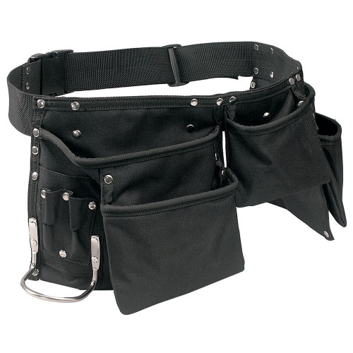 CONSTRUCTIE: centura din chinga textila, 2 buzunare duble frontale port scule, 2 buzunare mici duble, in lateral pentru scule mici si subtiri, 2 inele metalice in lateral pentru agatat scule.