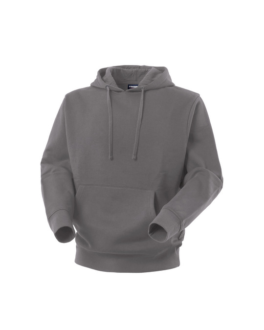 Sweatshirt with internal sweatband on the collar in matching colour, hood with drawstring, internal sweatband insert at the neck, two lower large pockets, elasticated knit cuffs and waistband.