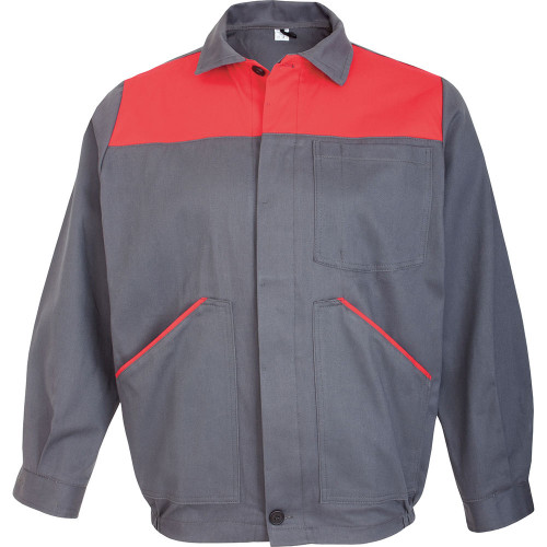 CARACTERISTICICOMPOZITIE: 100% bbc.;MATERIAL: tesatura diagonal;GREUTATE: 280 gr/mp;CONSTRUCTIE BLUZA: cu 2 buzunare dispuse lateral, cu deschidere verticala, un buzunar la piept (stanga), inchidere cu nasturi, acoperiti cu fenta, maneci drepte terminate cu manseta inchisa cu nasture;PANTALONI: cu pieptar si bretele elastice reglabile cu cleme, buzunar aplicat pe pieptar, 2 buzunare laterale cu deschidere verticala si unul aplicat dorsal, inchidere cu fermoar la slit.APLICATII: imbracaminte de protectie, riscuri minime.INDUSTRII: constructii, mecanica, logistica, servicii, uz general.