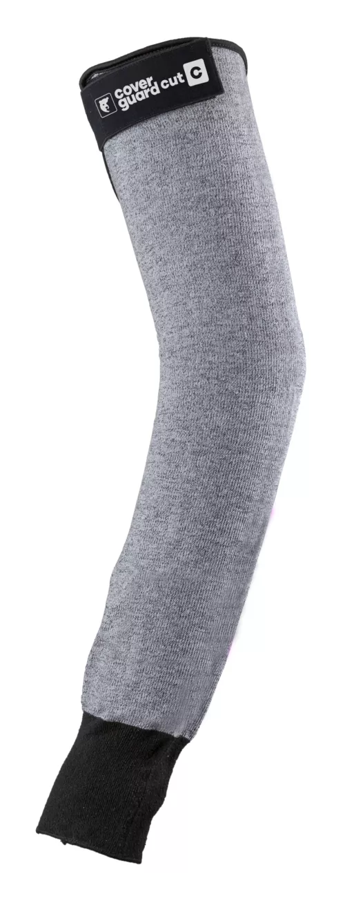 Grey seamless supported sleeve from HDPA, polyester, spandex, 13 gauge,