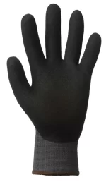 Double palm coating in smooth black nitrile with sandy palm finish,