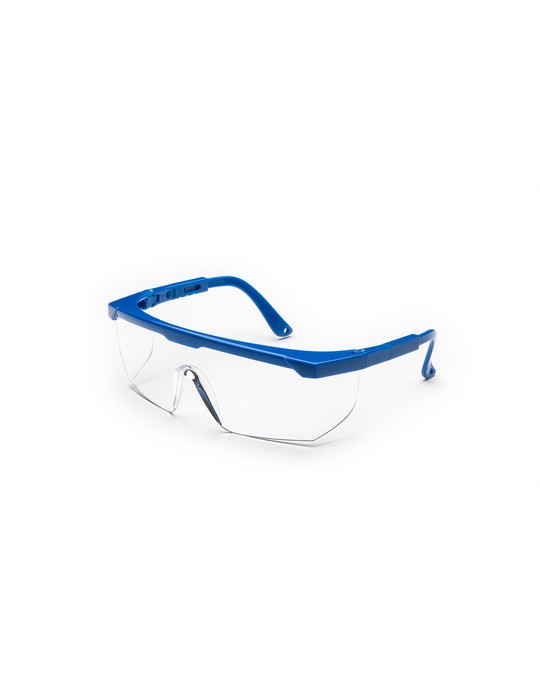Frame made of hypo-allergenic material, side protections incorporated, length and inclination adjustment of the temple pads. Scratch-resistant polycarbonate single lens, weight 30 g, optical class 1, impact class F.