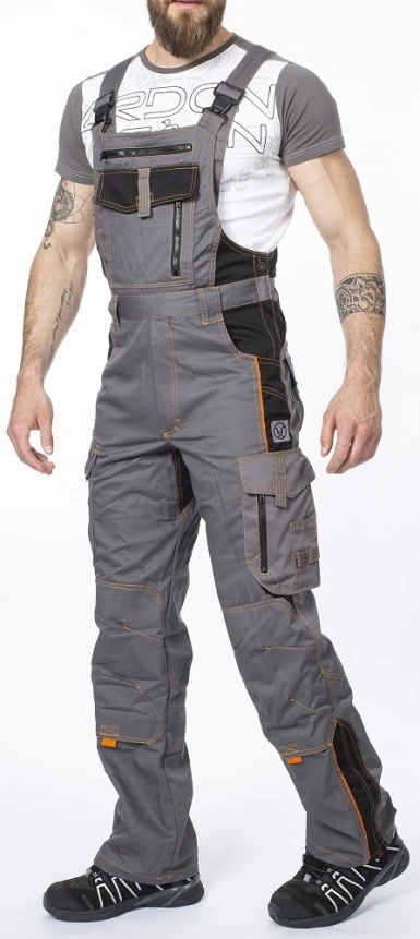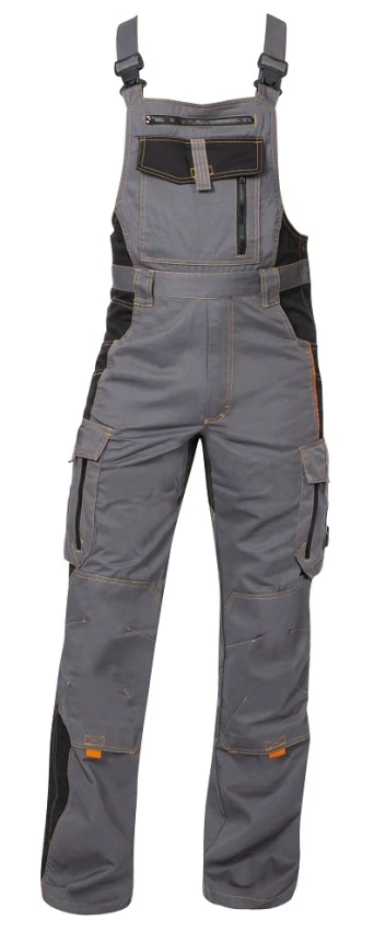 CARACTERISTICI MATERIAL: tesatura canvas, 65% poliester + 35% bbc., greutate specifica 320 gr/mp; CONSTRUCTIE: pantalon cu pieptar, bretele ajustabile cu