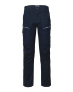 Women’s multi-pocket work trousers in cotton twill stretch, with side elastic and belt loops at the waist, zipper and button closure., Two classic-cut front patch pockets with embossed reinforcement insert and logoed lining, additional front pocket in the lower part and side tape measure pocket on the left leg, side pocket fastened with flap and Velcro on the right leg, two back patch pockets., Herringbone fabric details on the front pockets and near the tape measure holder, triple stitching at the crotch, pences at the knees for added comfort., Horizontal piping on front pockets and 4 reflective strips on tape measure pocket.