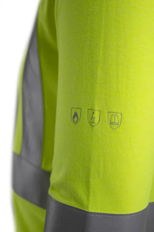 PERFORMING inherent flame retardant COMFORT can be worn all year round thanks to its weight 180g/m2 VISIBILITY EN 20471 class 2 standard |