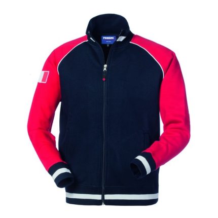 Overalls featuring a central front closure with plastic zip covered by a flap, shoulders outlined with red reflective piping, elastic at the waist on the back. Two lower front patch pockets closed with flap and Velcro and inner side bellow, two patch chest pockets closed with flap and Velcro, large side pocket on the right leg closed with flap and Velcro, elastic at the bottom of the sleeve, two reflective stripes., Various yellow bar tacks, jacquard label with pictogram sewn on the right chest pocket.