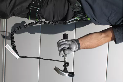 It is essential to secure your tools to prevent them from falling, because the impact generated by a tool in free fall is considerable.