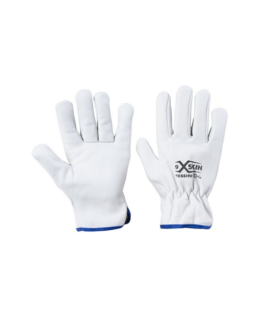 Glove with palm and back in grain leather with elastic wristband inside, shirred wrist, it provides comfortable softness and great dexterity, good resistance to abrasion and tear.