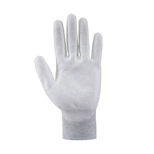 CARACTERISTICIMATERIAL: poliester, fir antistatic, impregnate cu poliuretan;CONSTRUCTIE: manusa tricotata cu 5 degete, impregnata pe palma si varful degetelor cu poliuretan, fara cusaturi, manseta elastic;LUNGIME: 25 cm.APLICATII: medii de lucru care necesita protectie mecanica, risc de cat.I (protectia dispozitivelor electronice impotriva fenomenelor electrostatice).INDUSTRII: electronica, automotive, aerospatiala, telecomunicatii.