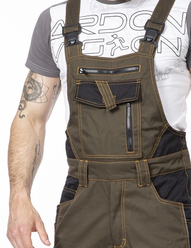 CARACTERISTICIMATERIAL: tesatura canvas, 65% poliester + 35% bbc., greutate specifica 320 gr/mp;CONSTRUCTIE: pantalon cu pieptar, cu bretele ajustabile cu elastic