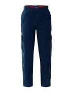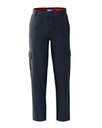 Work trousers with inside adjustable elastic at the waist, flap closure with zip and button on the belt., Two expandable side pockets with central bellows closed with flap and Velcro, two internal front pockets with red stitching, back patch pocket on the right closed with flap and Velcro, one back pocket on the left closed with traditional button, various red bar tacks.