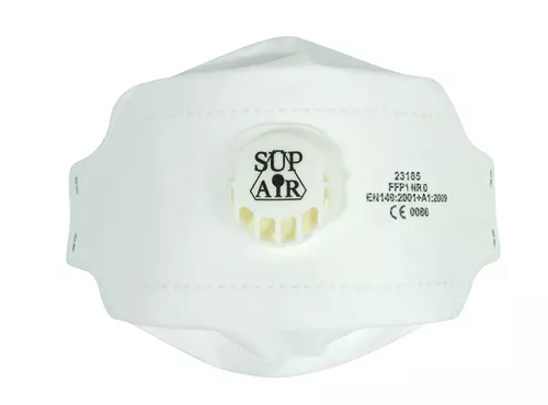 FFP1 disposable foldable half mask in nonwoven polypropylene with electrostatic filter media and exhalation valve, latex free synthetic rubber, PU foam total nose seal,